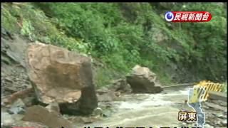 屏东雾台台24线落石坍方造成道路中断。图片来源:台湾“民视新闻”