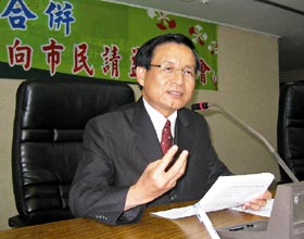 台南市长许添财昨天举办市民请益座谈,对于未来动向仍不愿意透露,但对未来的市政却侃侃而谈。图片来源:联合报