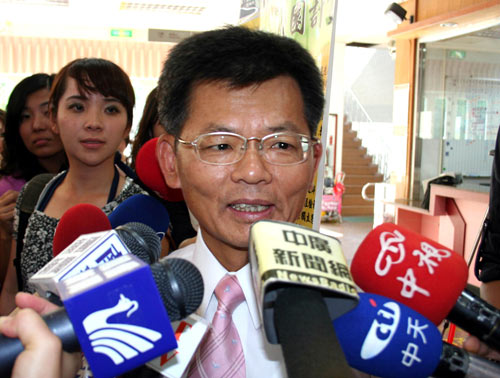 高雄县长杨秋兴3日对是否参选高雄市长松口,他在县议会场外接受媒体访问时表示,“天人交战”很久,心意已定,正朝参选方向思考,并将在适时宣布。图片来源:“中央社”