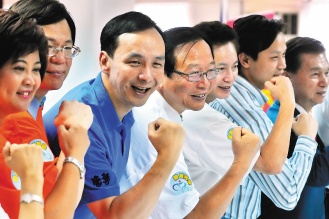 朱立伦(左三)公布发言人团,名嘴张启楷(左二)领军。 来源:台湾《联合报》