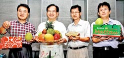 台南县长苏焕智(中)10日将赴大陆卖水果。图片来源:中国时报