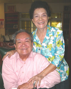 邱连辉13日上午因病过世。右为邱太太谢柑妹。(台湾《联合报》资料图)