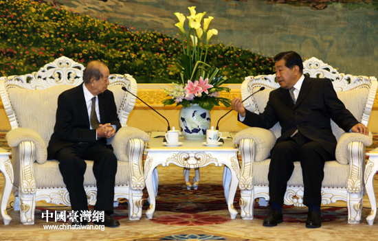 中国台湾网9月15日北京消息 今天下午,中共中央政治局常委、全国政协主席贾庆林在北京人民大会堂会见了台湾奇美文化基金会董事长许文龙一行。