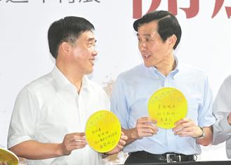 中国台湾网9月18日消息 据台湾“中央社”报道,马英九今天肯定台北市长郝龙斌的市政成绩,写下“幸福城市,好上加好”的祈福文字。郝龙斌则表示,花博是把台湾花卉、环保科技与文化创意向全世界展示的舞台。