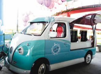 蔡英文的“小英号”,结合行动咖啡车功能,走温馨都会风格,颜色为“土耳其蓝”,一点都不绿。来源:台湾《联合报》