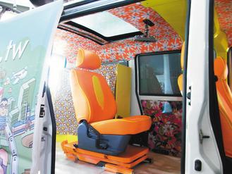 苏嘉全的“itoro号”,特别强化喇叭音响功能;另外车顶开天窗,并加装电动升降椅的机关。来源:台湾《联合报》