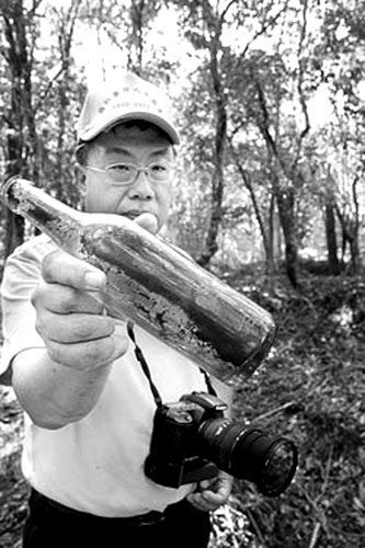 日军战壕内发现的日本酒瓶。图片来源:国际在线-世界新闻报