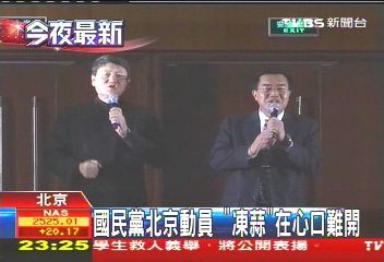 台湾“五都”选举进入最后冲刺阶段,据台湾TVBS的报道,为了在紧绷的选情下为国民党候选人拉票,11月1日晚间在北京,有台商席开40多桌,举办动员餐会,邀请超过500名北京台商跟台湾学生到场,现场十分热闹。