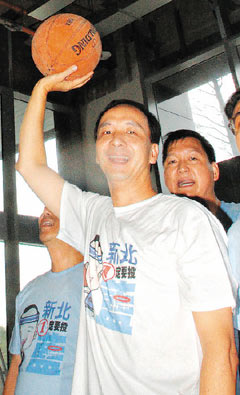 朱立伦上午在竞选总部与国民党籍议员候选人举行三对三篮球赛,呼应投“蓝”主题,他也开出了一张青年支票,承诺当选之后,将在新北市全市普设篮球场。他说,篮球是小区年轻人运动、也是大家活动,非常重要的场所,设置的小区篮球场,将由市府检查维持篮框标准、篮网完整、夜间照明方便,让大家随时能在小区运动,保持身体健康。