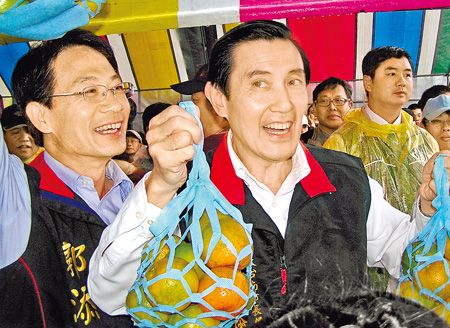 马英九下午回防北部,陪郝龙斌到台北市松山健安新城拜票;晚间更深入绿营大票仓台北县新庄,为朱立伦站台,人潮挤爆新庄体育馆。(中国台湾网 陈佳慧)