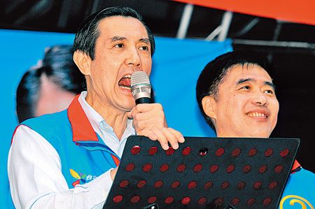 马英九14日以党主席身份连赶五市辅选,他晚间赶回台北市,声嘶力竭地为郝龙斌拉票。来源:台湾《中国时报》