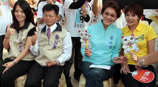 早已陪同母亲跑摊、甚至独当一面的黄昭顺女儿陈菁徽,昨天也和黄昭顺一同出席高雄地检署在统一梦时代百货前广场举办的反贿选活动时,与杨秋兴、杨绚茵父女并排而坐。