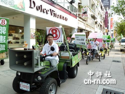 据中评社报道,“五都”市长暨市议员选战进入倒数,候选人进入巷战肉搏,使尽力气,吸引选民目光。民进党高雄市议员候选人郭建盟推出电动三轮踏脚车及农机战车,在大街小巷穿梭拜票,很吸睛。