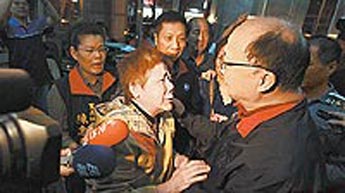 林宜君(左)向胡志强哭诉遭误解涉入贿选。 图片来源:台湾《苹果日报》
