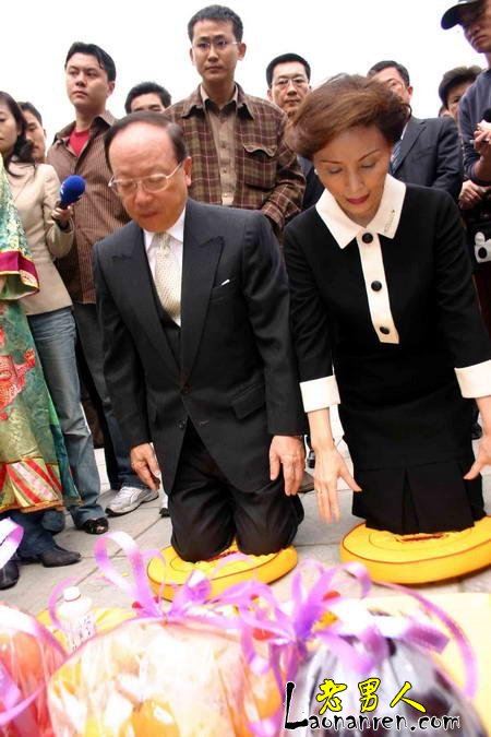 蒋孝严和夫人蒋黄美伦在桂林市郊母亲章亚若墓前祭告。