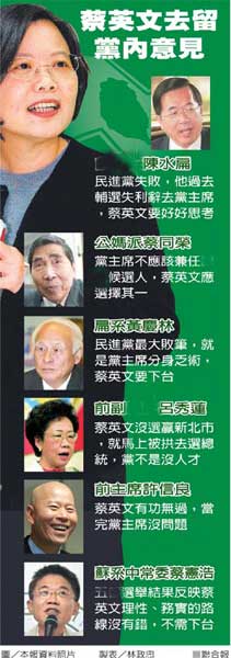 中国台湾网11月30日消息 据台湾《联合报》报道,台湾五市选举大战刚刚落幕,绿营内战就开打。前台湾地区领导人陈水扁昨天透过转述表示,这次选举民进党只保有高雄、台南两市,是失败的,他过去辅选“立委”失利后就辞去民进党主席,蔡英文自己应该好好思考。