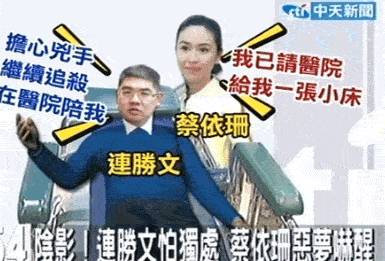 中国台湾网12月1日消息 据台湾中天电视台报道,连战之子、国民党中央委员连胜文遭枪击案至今还迷雾重重。正在台大医院治疗的连胜文担忧凶手有幕后共犯,到医院行凶灭口,希望妻子蔡依珊可以到医院陪她;蔡依珊也担忧丈夫安危及心理状况,便入住连胜文病房,随侍在侧。