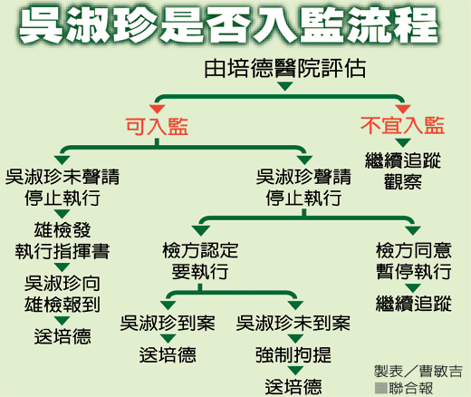 评估吴淑珍是否入监服刑流程。 来源:台湾《联合报》
