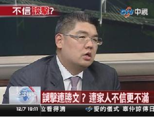 中国台湾网12月8日消息 据台湾“今日新闻网”报道,国民党中央委员连胜文遭枪击案迄今真相未明,但各种揣测不断,大难不死的连胜文在接受平面媒体访问时表示,他无法接受“误击”的说法,而连家也决定在近日内采取必要行动,要求真相不可以被特定的政治目的所掩盖。