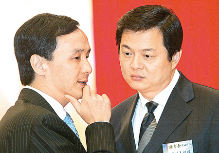 台北县长周锡玮(右)以准“过来人”经验断言,台中、台南、高雄三市至少会乱一年,新北市由于已有磨合经验,市长朱立伦会比较平顺。图片来源:台湾《中国时报》