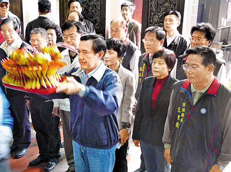 马英九视察澎湖,专程前往开台天后宫祈福参拜。