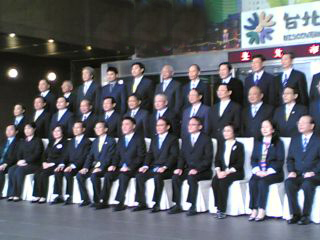 郝龙斌在总辞职致词时,先鞠躬感谢团队的努力,郝龙斌说,台北市政府经历猫缆、文湖线、花博冲击风暴,团队就像兄弟姐妹一样,大家一同打拼,化解危机。