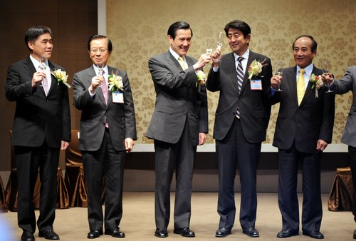 11月2日,台北松山机场与东京羽田机场航线开航,马英九出席并致辞时说,从台日加强交流来看,显示“我们不是以中国大陆为唯一交往对象,而是采取‘平衡策略’”。他说,“日本前首相安倍晋三也肯定两岸关系改善”。图片来源:台湾《中央日报》网络报