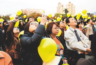 台中县最后一天降下县旗,县府员工和民众挤满县府前广场见证历史一刻,十分不舍。图片来源:台湾《联合报》