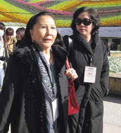 孙中山的孙女孙穗芬(左)受老友之邀赴台参观花博,72岁的她,保养得宜,神采焕发,随身的友人则刻意低调,不时打探周边人群动静。图片来源:台湾《联合报》