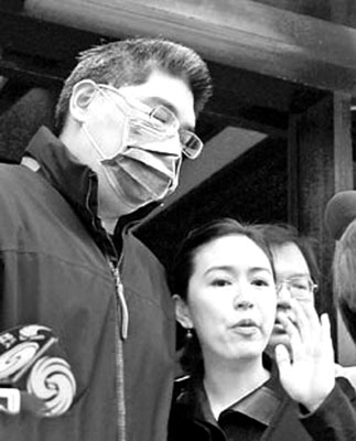 资料图:连胜文在妻子蔡依珊陪同下出院。