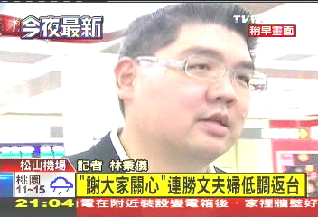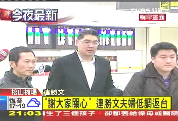 中国台湾网1月8日消息 据台湾TVBS电视台报道,连胜文日前到上海复诊肾脏肿瘤,于今晚返台,但连胜文没有像往常一样,枪击案发生后总是戴口罩外出,而是脸部全曝光。
