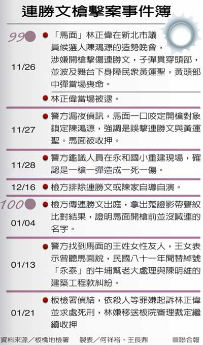 连胜文枪击案事件簿。图片来源:台湾《联合报》