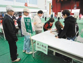 民进党台中、台南、高雄三都市党部主委今天改选,由于台中、台南两市竞争激烈,上午投票情形相当踊跃。图为台中市投票情形。图片来源:台湾《联合晚报》