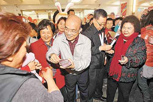 民进党中央公布的蔡英文新春行程,初一早上8至9时在新北市中和烘炉地参拜,10时转往台北市松山慈惠堂;苏贞昌则于早上9时到台北市大龙峒保安宫参拜,10时赶往行天宫上香,被外界指为两边“抢人”。台北市议员高嘉瑜说,她先收到苏贞昌办公室的行程通知,稍后又收到蔡英文行程,让她不知如何是好,最后决定赶场两边都参加。