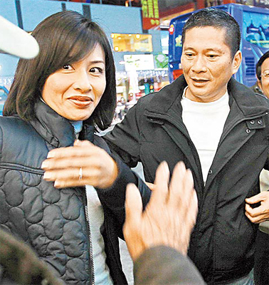 邱议莹、李永得(右)两人前天在高雄被媒体拍到,邱尴尬闪镜头。 来源:台湾媒体