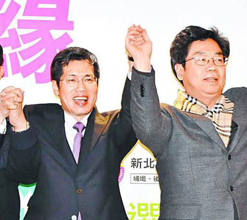 绿营罗致政(左)、庄硕汉14日宣布参选新北市“立委”。 图片来源:台湾《苹果日报》