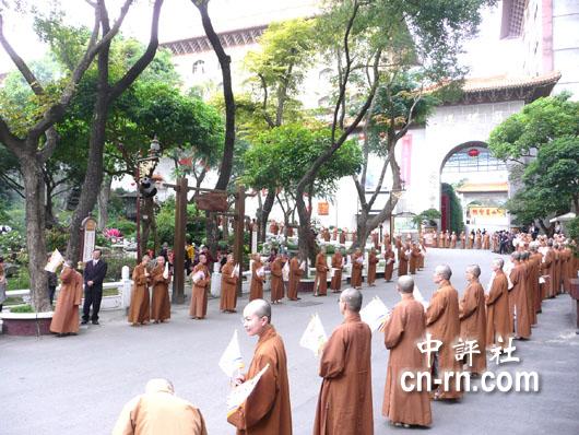 僧众列队等待陈云林的到来。