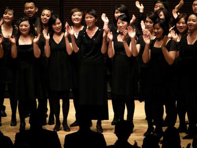 台北爱乐室内合唱团今天上半场的曲目包括多个名曲,包括台湾创作的《蟑螂》、菲律宾作曲家的《Gloria》,及蒙古作曲家的《八骏赞》。