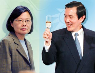 民进党主席蔡英文明将宣布参选2012。若她能通过初选,会遭遇追求连任的马英九,2012年将上演“双英大战”。图片来源:台湾《联合报》