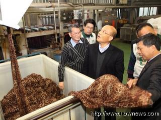 苏贞昌前往新北市土城区一家印染厂,并参观整个染布的制作过程。图片来源:台湾“今日新闻网”