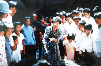 吕秀莲(中)1990年8月前往福建省南靖县寻根谒祖,还与乡人开简单的谈话会。当时她并无公职身份。
