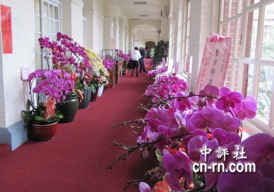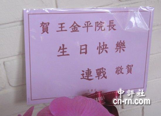 今“立法院长”王金平70大寿,院长室外面有一整排花篮。