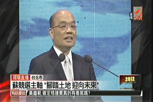 中国台湾网3月22日消息 据台湾媒体报道,今(22)日晚间7时许,台当局前“行政院长”苏贞昌召开参选会,以“脚踏土地,迎向未来”为主轴,正式宣布投入2012年台湾地区领导人选举。