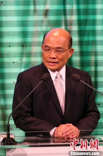 3月22日晚,苏贞昌在台北发表参选演说,宣布参加2012台湾当局领导人选举民进党党内初选。 中新社发 董会峰 摄