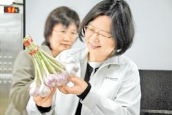 蔡英文27日走访云林,接过当地支持者祝她“冻蒜”的蒜头,频频称赞“这蒜头好漂亮!”