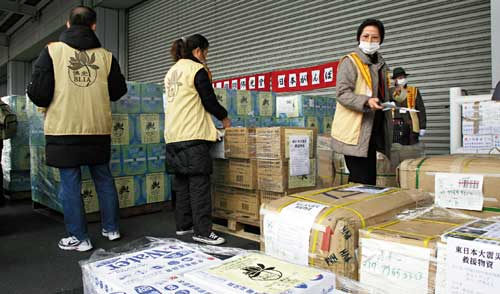 资料图:由台湾以海、空运陆续抵日的救灾物资约有400吨。