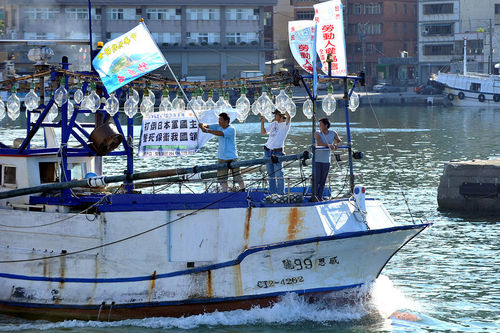 资料图:9月13日,台北县野柳港,台湾中华保钓协会联合香港与澳门的保钓人士驾驶“感恩99号”渔船驶往钓鱼岛海域宣示主权。