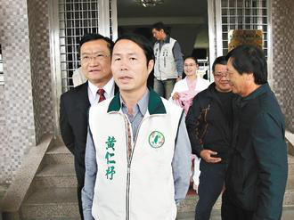 民进党“立委”黄仁杼(左二)、台北市议员江志铭(左一)与电台主持人昨天到北监探扁。图片来源:台湾《联合报》
