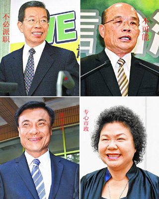 谢长廷、苏贞昌、苏嘉全及陈菊,被点名是蔡英文副手的可能人选,四人受访时均避谈此议题。图片来源:台湾媒体