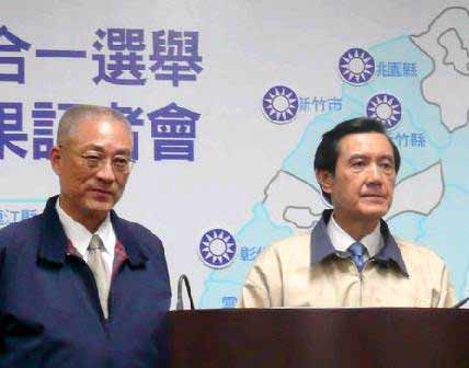 吴敦义(左)担任马英九副手人选后,“内阁”将顺势改组。(资料图片)
